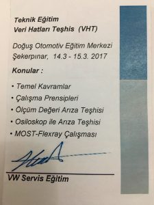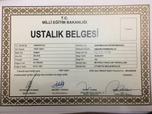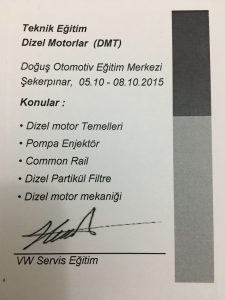 Doğuş Otomotiv bünyesindeki tüm eğitimleri tamamlayarak Uzman Teknisyen Sertifikası almaya hak kazanmıştır.