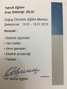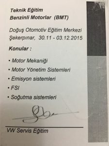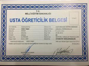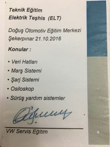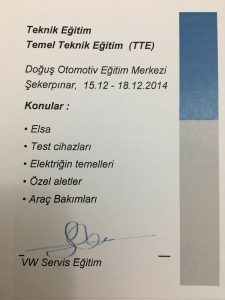 Doğuş Otomotiv bünyesindeki tüm eğitimleri tamamlayarak Uzman Teknisyen Sertifikası almaya hak kazanmıştır.